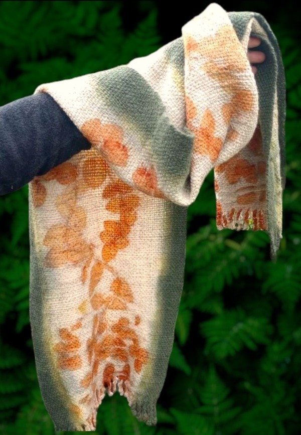 "Descubre la elegancia y la sostenibilidad en esta colección de prendas tejidas en telar e intervenidas con la técnica de ecoprint. Cada prenda es confeccionada artesanalmente con materiales naturales de la más alta calidad, como lana de oveja, llama y/o cabra, lo que garantiza una prenda suave al tacto, cálida, duradera y sobre todo abrigada, combina además la destreza tradicional con la innovación eco-amigable.