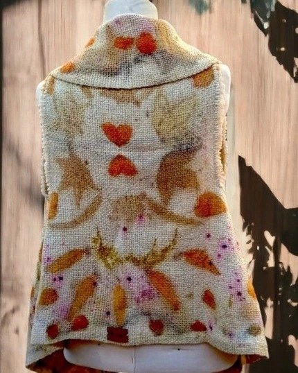 La técnica de tejido en telar proporciona una trama uniforme y una textura agradable que resalta su calidad artesanal. Lo que hace que estas prendas sean únicas es la técnica de ecoprint, en la que se utilizan elementos naturales como hojas, flores y cortezas para crear estampados orgánicos sobre la tela. Estos elementos se fusionan con la prenda a través de un proceso respetuoso con el medio ambiente, que fija los pigmentos de las plantas de manera duradera. Esta colección no solo refleja el compromiso con la sostenibilidad y la preservación del medio ambiente, sino que también resalta la belleza de la naturaleza en cada diseño. Cada prenda es una obra de arte única que no encontrarás en ningún otro lugar. Versátiles y cómodas son ideales para usar en estaciones cálidas como otoño o primavera. Además, son piezas de moda artesanal que realzan cualquier atuendo, agregando un toque de exclusividad y elegancia. Descubre la belleza de la artesanía tradicional con un enfoque moderno en la sostenibilidad en nuestra tienda en línea. Cada prenda tejida en telar y decorada con ecoprint es una declaración de estilo y conciencia ecológica que te hará destacar en cualquier ocasión."