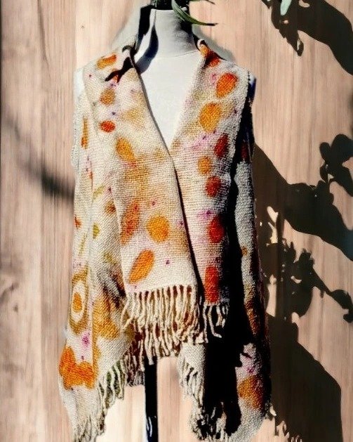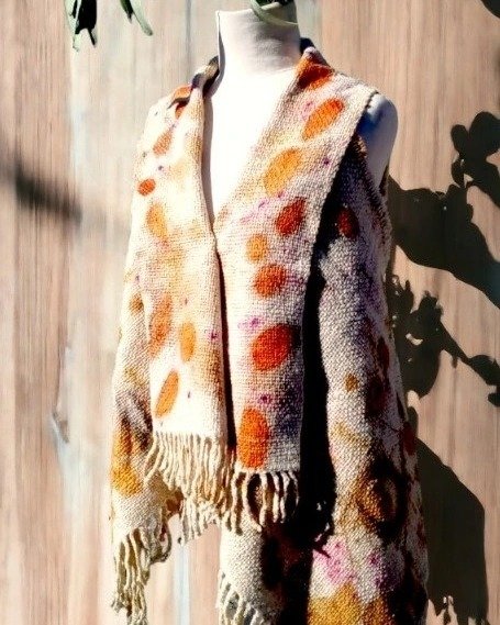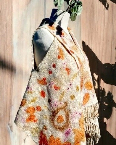 "Descubre la elegancia y la sostenibilidad en esta colección de prendas tejidas en telar e intervenidas con la técnica de ecoprint. Cada prenda es confeccionada artesanalmente con materiales naturales de la más alta calidad, como lana de oveja, llama y/o cabra, lo que garantiza una prenda suave al tacto, cálida y duradera., combina ademas la destreza tradicional con la innovación eco-amigable.
