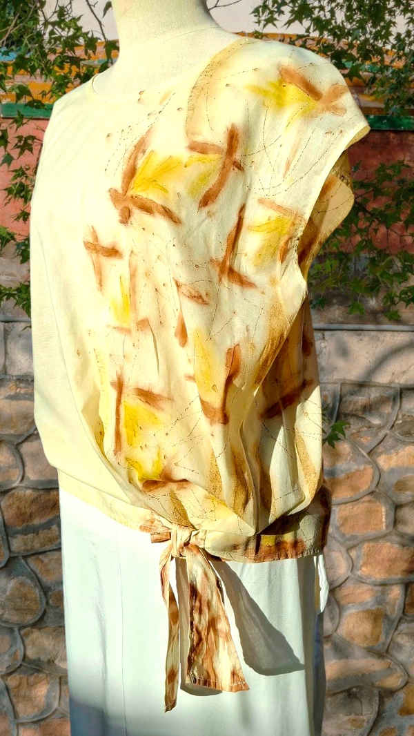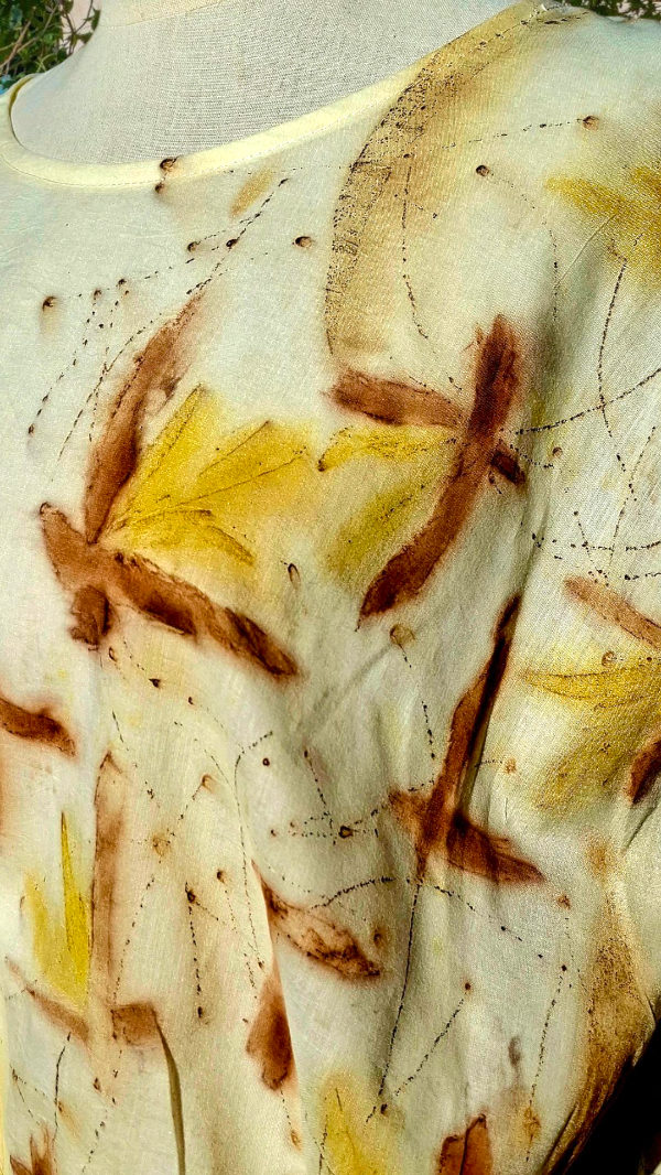 Técnica ecológica: Patrón único en cada pieza, usando hojas y flores recolectadas de forma sostenible.